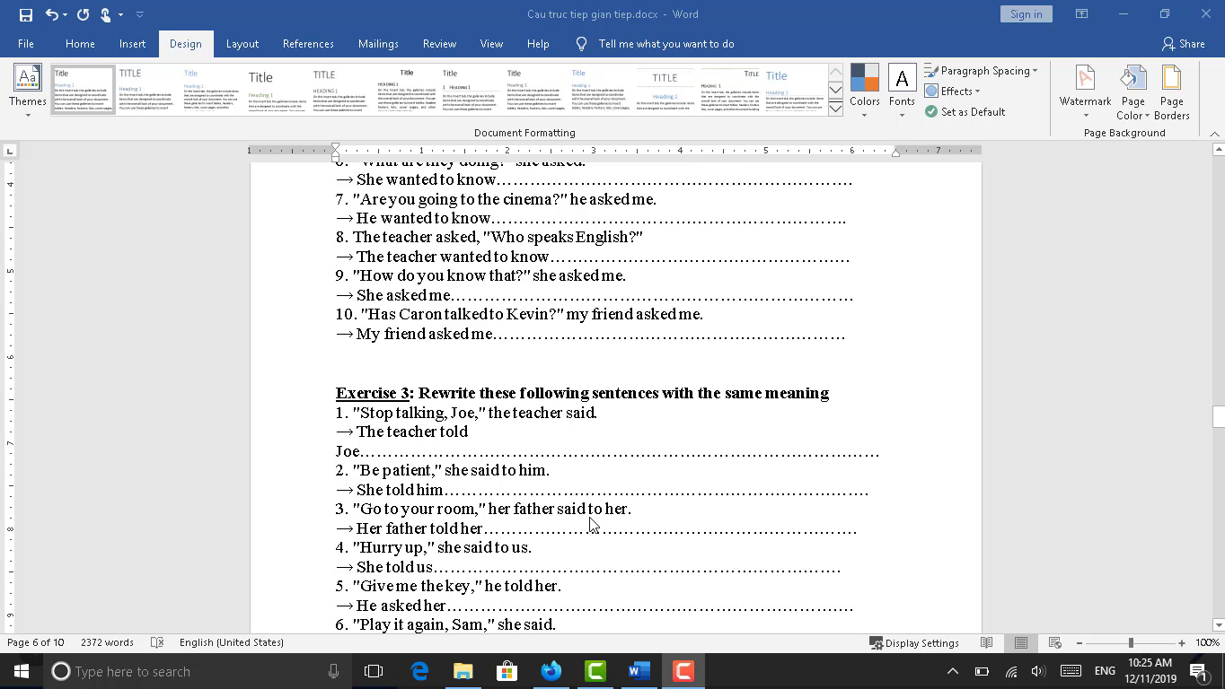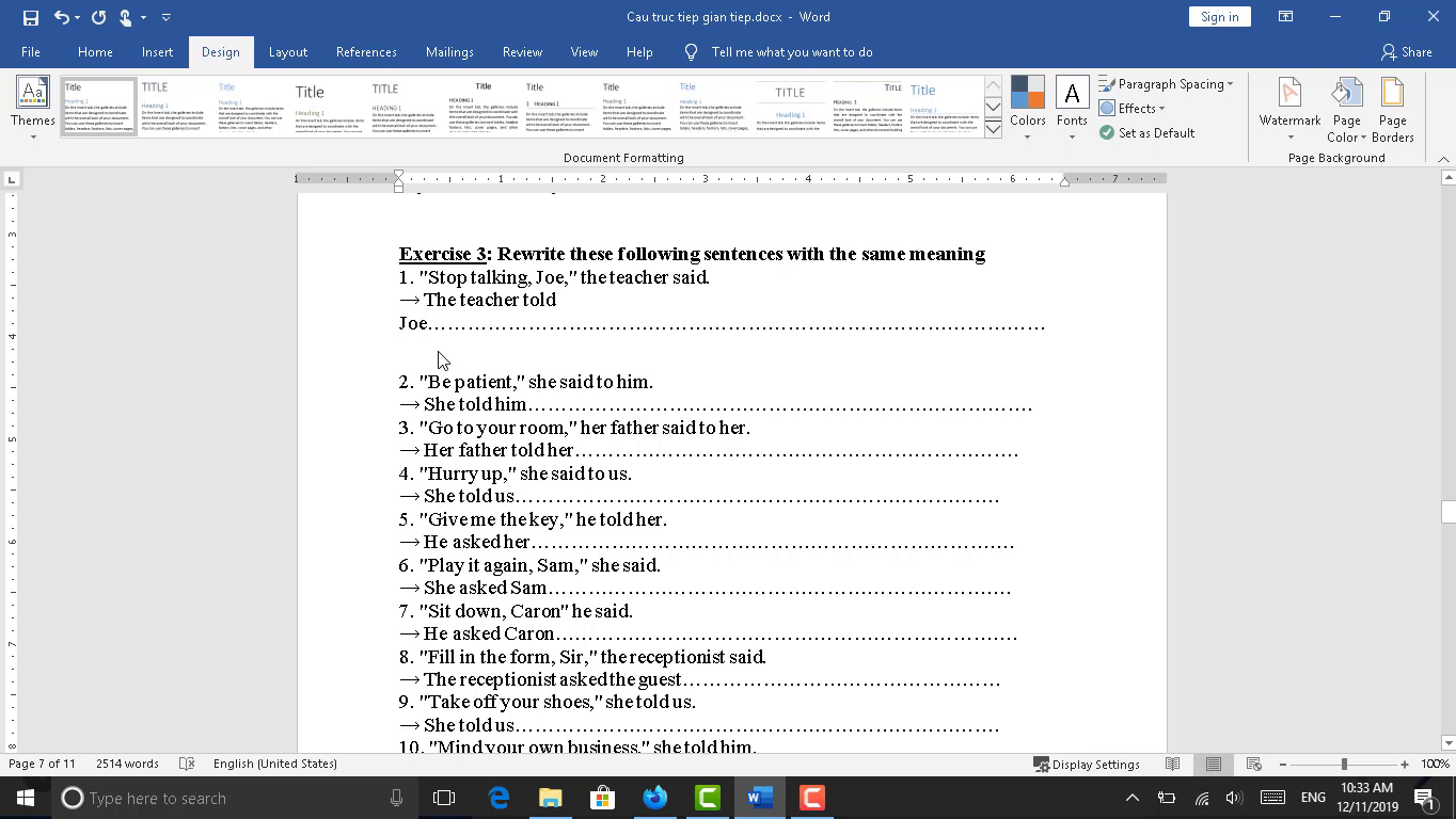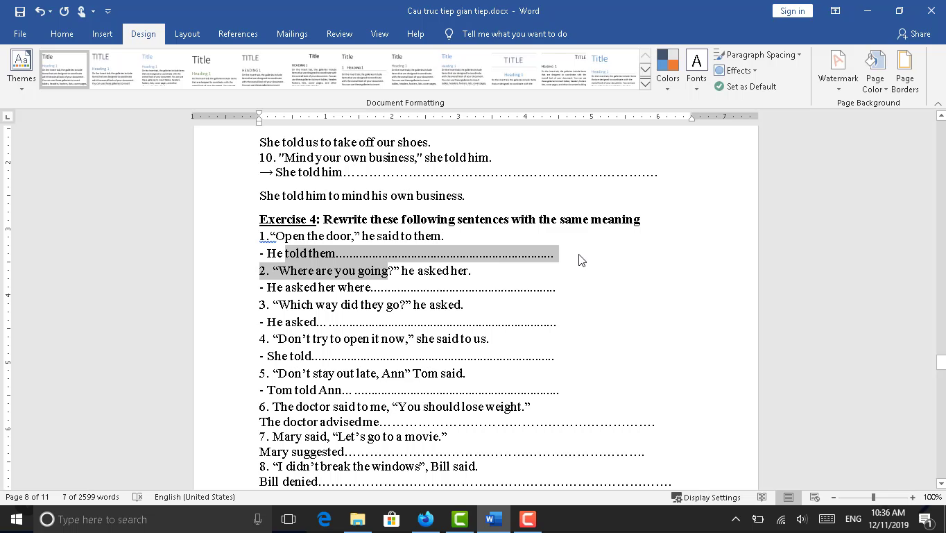 Bài 9 - Bài tập chuyển câu trực tiếp sang câu gián tiếp dùng nhiều động từ tường...